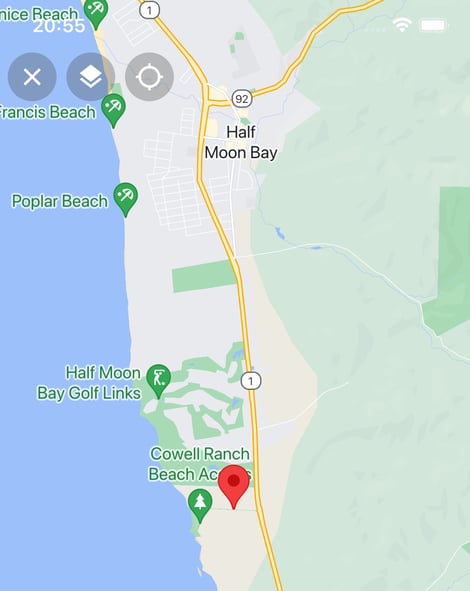 You will see a full screen map, if you tap on a location a track or a heatmap Close the fullscreen map by clicking on the 1st button in the top left corner. You can move, zoom and rotate the map with two-finger gestures. You will see an Open Streep Map. In case you're a PRO, you'll see Google Maps. If you see Google Maps, the 2nd button will indicate the option the change the layers of the map. Continuously click on the button and the type of the map will change between normal, satellite,...